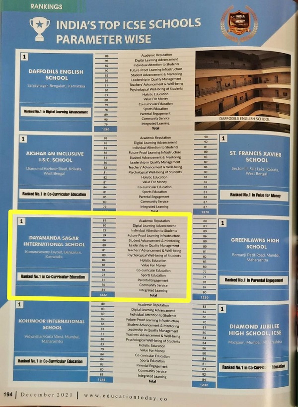 By Education Today for top ICSE School Ranked No 1 in Co-Curricular Education on 11th March 2022.