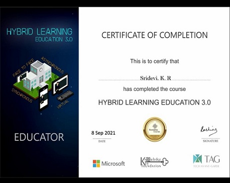 Our School Teacher Mrs. Sridevi K R attended a workshop and qualified to get the certificate.