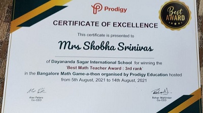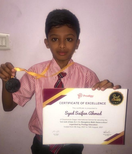 And Master Syed Saifan Ahmed of Class 5 took 3rd place in Bangalore Math Game-a-thon organized by Prodigy Education.