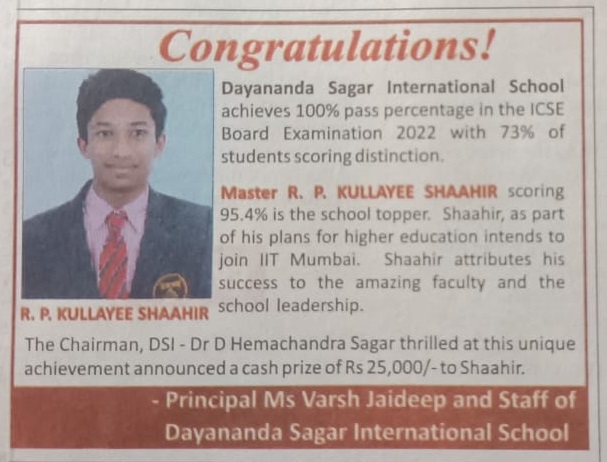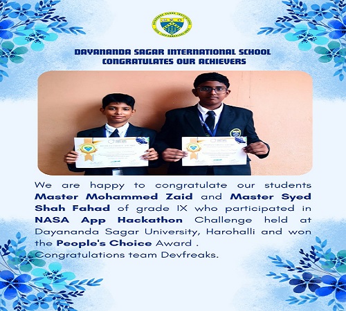 It's an immense pleasure that Dayananda Sagar International School has won one more feather to its crown and has proved itself by bagging All India Award