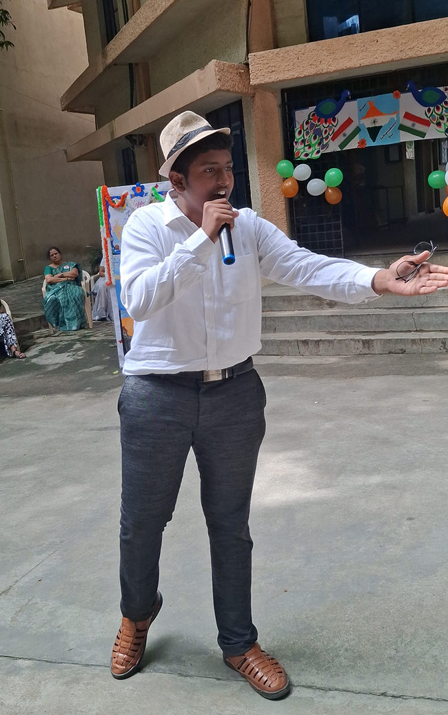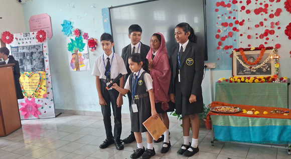 The dias had Mr. Thippeswamy (the chief guest), Shri. Galiswami (secretary, Dayananda Sagar Institutions), Mr. Nishan H Sagar (joint secretary, Dayananda Sagar Institutions), Mr. Mahesh (coordinator, Dayananda Sagar Schools) as eminent dignitaries.