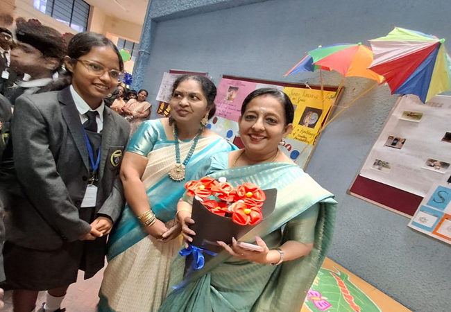 The Principal of Dayananda Sagar International School, Mrs. Varsha Jaideep with her team stands proud to witness the students embarking into their new chapter"
